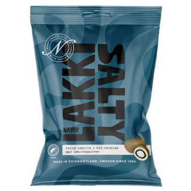 Description: Salt licorice covered with white chocolate and licorice powder.