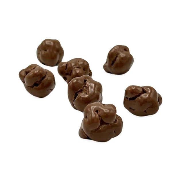 Description: Candied popcorn (30 %) covered with milk chocolate (70 %) and sea salt.