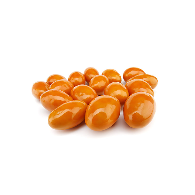 Description: Almonds coated with milk chocolate, white chocolate and orange.