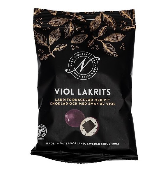 Description: Licorice coated with white chocolate and with a taste of violet.